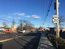 Swamp Road dates back to 1737, when the Newtown Road was constructed and connected Newtown with Quakertown and Milford Township.[4] The Dublin Pike was constructed in 1876.[5] When Pennsylvania first legislated routes in 1911, what is now PA 313 from northwest of Dublin to Doylestown was legislated as part of Legislative Route 154.[6] By 1927, PA 212 was designated on the westernmost part of current PA 313 between US 309 (now PA 309) and Hellertown Avenue in Quakertown and PA 113 was designated along the part of present-day PA 313 between Kulps Corner and Doylestown. PA 113 split from Swamp Road and followed present-day Old Dublin Pike to US 611 (Main Street) in Doylestown, where it turned south for a concurrency.[7] PA 313 was designated by 1930 to run from PA 212 at Hellertown Avenue in Quakertown southeast to PA 113 and PA 413 in Kulps Corner. At this time, the route southeast of Quakertown was under construction.[8] The portion of PA 313 between Quakertown and Kulps Corner was completed during the 1930s.[9] PA 313 was extended southeast to US 611 (Main Street) and Old Dublin Pike in Doylestown in 1946, replacing the portion of PA 113 between Kulps Corner and Doylestown.[10] By 1950, PA 313 was realigned to follow Swamp Road southeast to end at US 202 east of Doylestown, leaving the section of Old Dublin Pike heading into Doylestown unnumbered.[11] PA 313 was extended west to run concurrent with PA 212 through Quakertown to end at its current western terminus with PA 309 and PA 663 by 1971.[12] By 1980, PA 313 was extended southeast to end at its present location at PA 263.[13] By 1991, the concurrency with PA 212 through Quakertown was removed.[14]