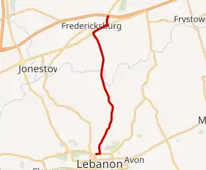 Pennsylvania Route 343 (PA 343) is an 8.16-mile (13.13 km) route running from Lebanon north to Fredericksburg in Lebanon County, Pennsylvania. It begins at PA 72 and ends at Exit 6 of Interstate 78 (I-78). PA 343 heads mostly through urbanized areas near Lebanon before continuing into rural areas further north. There is a concurrency with U.S. Route 22 (US 22) near the northern terminus.