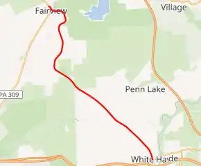 Pennsylvania Route 437 (PA 437) is an 11.2-mile-long (18.0 km) state highway located in Luzerne County in Pennsylvania. The southern terminus is at PA 940 in White Haven. The northern terminus is at PA 309 in the Fairview Township community of Mountain Top. PA 437 runs southeast-northwest through forested mountain areas as a two-lane undivided road. The roadway was paved by 1930 and designated PA 437 in the 1960s.