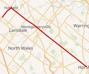 | Towamencin–Hatfield township line | 0.000 | 0.000 | Western terminus | ||