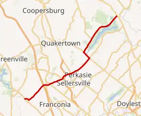 | Montgomery | Upper Salford Township | 0.000 | 0.000 | Southern terminus | |