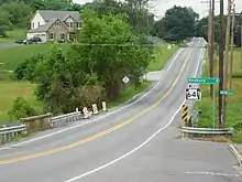 In 1937, PA 641 was extended west from Carlisle to PA 433 at the intersection of Amberson Road and Timmons Road, following its current alignment. The route ran concurrent with PA 433 between Roxbury and Cold Spring Road. The extended PA 641 designation replaced PA 333 between Roxbury and Newburg.[9][10] The entire length of PA 641 was paved in the 1930s along with the section of PA 433 between Shade Gap and the western terminus of PA 641.[10] The eastern terminus of PA 641 was moved to its present location at US 15 in the 1950s, with a rerouted US 15 replacing the route along 32nd Street.[11] In the 1960s, PA 641 was extended west to its current terminus at US 522 in Shade Gap, replacing the section of PA 433 between Shade Gap and Amberson Road. In addition, the concurrent PA 433 designation was removed from PA 641 between Cold Spring Road and Roxbury.[12]
