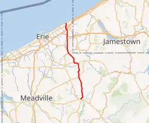 | Erie | Concord Township | 22.17 | 35.68 | South end of US 6 concurrency | |