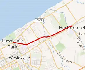 | Harborcreek Township | 3.85 | 6.20 | Eastern terminus; right-of-way continues as US 20 | ||