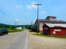 The road heads into Sugar Grove Township and runs through Frodelius Corners before coming into the borough of Sugar Grove. The route becomes West Main Street and passes homes, reaching an intersection with PA 69. Here, PA 69 turns east for a concurrency with PA 957 and the road heads through the commercial downtown on Race Street, with PA 69 turning to the north. PA 957 continues past more residences before crossing back into Sugar Grove Township and running through areas of farms and woods with some homes, with the road name changing to Russell Lander Road. The route heads into Farmington Township and continues southeast through rural areas. The road heads into more open agricultural areas as it passes through the residential community of Lander before turning east and heading through Marshtown Corners. PA 957 enters Pine Grove Township and turns southeast, passing through more forested areas with some farms and homes. The route reaches its eastern terminus at an intersection with US 62.[2][3]