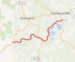 | Curwensville | 10.384 | 16.711 | Eastern terminus | ||