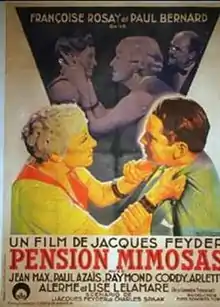 Pension Mimosas is a 1935 French drama film directed by Jacques Feyder. Based on an original scenario by Feyder and Charles Spaak, it is a psychological drama set largely in a small hotel on the Côte d'Azur, and it provided Françoise Rosay with one of the most substantial acting roles of her career. It was produced by the French subsidiary of the German company Tobis Film.