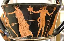 bowl 03.815H. 15.5 cmred-figure kylixc.460 BCInt: Nymph with scepter and vase; Ext: Two women and four youthsRecord