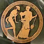 Kylix 1889.27 Attic Red-figure kylix 460 BC Int: Youth with woman. Record