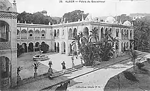 The People's Palace (Arabic: قصر الشعب, French: Palais du Peuple), formerly Palais d'été ("Summer Palace" of the Governor), is a public building in Algiers. It was first built in the Ottoman era, then became the residence of the Governor of French Algeria, and was the seat of government during the first three years of Independent Algeria (1962-1965). Its current appearance dates of the colonial period.