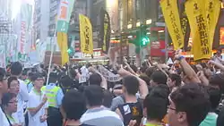 In May 2013, the People Power once again staged a month-long filibuster by moving a total of 710 amendments on the Budget Appropriation Bill debate, to press for a universal pension scheme and a HK$10,000 cash handout to be included in John Tsang's budget.[6] The government warned that the service would shut down if the budget bill do not pass. Jasper Tsang ordered to end the filibuster on 13 May after 55 hours spent to debate 17 of the 148 amendments.[7] The Appropriation Bill was passed on 21 May 2013 with 684 amendments negatived.[8]