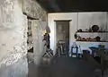 The Peralta Adobe is a historic house museum, available for tours by appointment.[8] The building covers an area of 20 feet by 41 feet (6 x 12.4 m), and has two connecting rooms of approximately equal size. The walls are about 2 feet (61 cm) thick, and made of adobe blocks that are 22 inches by 11 inches by 4 inches (56 x 28 x 10 cm). The adobe is furnished inside as it would have been 200 years ago. Outside is an outdoor fireplace oven (horno).