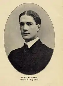 Percivale St-Helier LeSueur[1] (November 21, 1881 – January 27, 1962) was a Canadian senior and professional ice hockey goaltender. He was a member of the Smiths Falls Seniors for three years, with whom his performance in a 1906 Stanley Cup challenge series attracted the attention of his opponents, the Ottawa Silver Seven. Although his team lost the series, LeSueur excelled in goal, keeping the games close. Nine days after the defeat, he joined the Silver Seven and played in a challenge match against the Montreal Wanderers. He remained with Ottawa through the 1913–14 season where he served as team captain for three seasons, and assumed coaching duties in his final season with the team.
