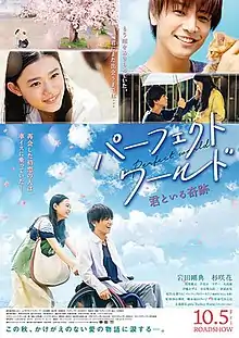 Perfect World (Japanese: パーフェクトワールド 君といる奇跡, Hepburn: Pafekuto Warudo: Kimi to Iru Kiseki) is a 2018 Japanese film based on manga series Perfect World by Rie Aruga. It is a love story between a protagonist left handicapped by an accident and the heroine who cares deeply for him. Directed by Kenji Shibayama, it stars Takanori Iwata and Hana Sugisaki, [2]alongside a supporting cast featuring Kenta Suga, Sei Ashina, Aya Ōmasa, Magy, Kazue Itoh , Mantaro Koichi , and Naomi Zaizen. [3][4]