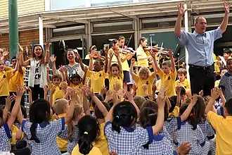 Performing arts education in Australia refers to the teaching of different styles of creative activity that are performed publicly. The performing arts in Australia encompasses many disciplines including music, dance, theatre, musical theatre, circus arts and more.[1][2] Performing arts education in Australia occurs both formally and informally at all levels of education, including in schools, tertiary institutions and other specialist institutions. There is also a growing body of evidence, from the Australian Council for the Arts and the Parliament of Australia, showing that First Nation's participation in the arts and culture has significant economic, social and cultural benefits to Australia and further supports the outcomes of the Australian governments ‘Closing the Gap’ campaign.[3][4] There has been an increasing number of scholarships opening up in educational institutions for Indigenous Australians aimed at encouraging this participation in the arts.[5][6][7]