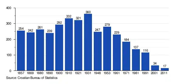 The 1991 census[4] recorded that 83.62% of the village population were ethnic Serbs (97/116), 7.76% were ethic Croats (9/116) and 8.62% were of other ethnic origin (10/116).