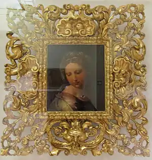 The identification of the Modena work was based on the eagle on the frame, on the mention of a "woman's head" by Raphael in a 1663 inventory of the d'Este art collections and on the halo behind the head. It probably formed an initial version of La Perla before being abandoned due to flaws in the panel. The work also allows us to see how 17th century painters in Emilia-Romagna referred to this head and to that of Raphael's Saint Cecelia in their elaboration of classicism.