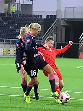 Harder enjoyed further success in the 2016 Damallsvenskan season, retaining the League Player of the Year award. Her 23 league goals secured the Top Goalscorer award and helped Linköping win the Damallsvenskan title.[10] By now a transfer target for the biggest clubs in women's football, Harder's agent announced in November 2016 that she would be leaving Linköping for a new challenge.[11]