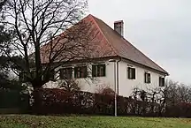 Spodnje Perovo Manor (dvorec Spodnje Perovo)—also known as Janežič Manor (Janežičeva graščina), Perau Manor, or Rasp Manor (Raspov dvorec)—stands in the northwest part of Spodnje Perovo. It was built by the Rasp family in the first half of the 17th century at the site of a medieval manor, and it has been remodeled several times since then. It is an L-shaped two-story structure that preserves Baroque architectural elements, including the door casing and window frames.[7]