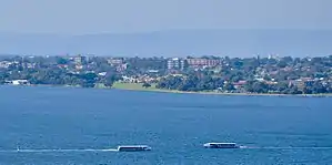 Perth Water is a section of the Swan River on the southern edge of the central business district of Perth, Western Australia. It is between the Causeway to the east, and Narrows Bridge to the west – a large wide but shallow section of river, and the northern edge of the suburb South Perth.[1][2] It is considered a landmark of the City of Perth.