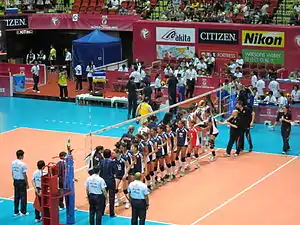 The Peru women's national volleyball team was one of the dominant forces in women's volleyball in the 1980s, culminating in the silver medal won at the 1988 Summer Olympics in Seoul, South Korea. The team's nickname is Las Hijas del Sol (Sun's daughters)