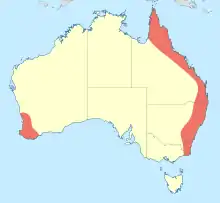 Petalura is a genus of very large dragonflies in the family Petaluridae.[2] Species of Petalura are brown or black with yellow markings and usually clear wings. The anal appendages of the males are broad and leaf-like giving them their common name of petaltails.[3] They are endemic to south-western and eastern Australia.[4]