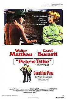 Pete 'n' Tillie is a 1972 American comedy-drama film directed by Martin Ritt and starring Walter Matthau and Carol Burnett.[2] Its advertising tagline was: "Honeymoon's over. It's time to get married."