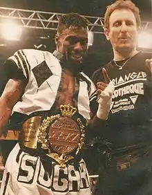 Peter "Sugarfoot" Cunningham (born March 25, 1963) is a retired Canadian 7-time World Champion[1] Hall of Fame[2] kickboxer, boxer, martial artist, actor and author. Rated by experts as one of the greatest full contact fighters of all time,[3] Sugarfoot was a superb technician who possessed high fighting I.Q. and lightning speed. He retired from kickboxing in 1996[4] with a record of 50-1-1, having avenged the only draw of his career but only one defeated Peter, the undefeated Richard Sylla at the WKA World Title in Paris. Cunningham's skills in the ring have been praised by many martial arts legends, including Benny "The Jet" Urquidez, Bill "Superfoot" Wallace, Chuck Norris, Dan Inosanto, Rigan Machado, Don "The Dragon" Wilson and many others. Cunningham maintained a high level competition throughout his career as most of his opponents were either current or former champions. In 1998 in San Jose, California, Peter was honored as the inaugural inductee in the I.S.K.A. Hall of Fame.[5]