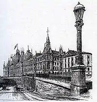 He led the development of what is now Victoria Terrasse between 1884 and 1890, which replaced more squalid dwellings known for their poor inhabitants. The new apartment complex was called Petersborg, but in 1913, in the aftermath of the 1899 real estate crash in Christiania, the complex had to be sold to the Norwegian state. The Ministry of Foreign Affairs is now located there. Petersen owned the country house "Gimle" near Frogner Church, and led an active upper-class social life there. He headed the arrangement committee for the famous speed skating race at Frognerkilen in 1885 between Axel Paulsen and Renke van der Zee. He was also a benefactor for city theatres, for the Museum of Decorative Arts and Design and Oldsakssamlingen.[1]