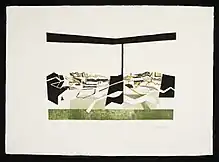 Landscape has always dominated his work. Early inspiration came from the quarries of Wales and the idea of figures in an empty pared-down landscape. In 1971, he established a studio on the north coast of Scotland. There were no more figures, only the rocks, heather, rivers, cliffs and sea of Caithness and Sutherland. He used several plates for each etching and a wide colour palette[11][12] a