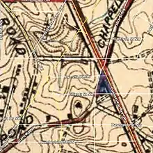 In the late 19th century, the site of Muhlenberg Park was the intersection of Grant Road and Chappell Road in rural Washington County, D.C.[1] In 1871, Washington County, Washington City, and Georgetown were unified under one district government, establishing the modern boundaries of Washington, D.C. Over the following decades, motorized streetcars made settlement in the far Northwest of the city more feasible. In 1907, the completion of a bridge over the Rock Creek gorge allowed Connecticut Avenue to run uninterrupted from downtown to Chevy Chase, Maryland.[2] As the area was developed, Grant Road was gradually built over and replaced with a street grid, leaving only a few disconnected segments, including the Grant Road Historic District, remaining. Chappell Road was connected to 36th Street NW and renamed, leaving a small, triangular piece of land between it and Connecticut Avenue.[2]