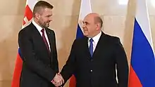 Peter Pellegrini (Slovak pronunciation: [ˈpeter ˈpeleɡriːni]; born 6 October 1975) is a Slovak politician who served as the prime minister of Slovakia from 2018 to 2020 and Minister of Health from December 2019 to March 2020. He previously served as deputy prime minister (2016–2018) and minister for Education and Science (2014), as well as spending two years as speaker of the National Council (2014–2016). Pellegrini was a member of Direction – Social Democracy until he left the party and founded Voice – Social Democracy in late June 2020.