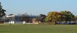 Womersley then moved to the Scottish Borders, where he built The Rig, his home and studio in Gattonside near Melrose, in 1957.[1] The same year, he worked on a house for the textile artist Bernat Klein near Selkirk. This house, High Sunderland, was also located in dense woodland, within the parks of the 19th-century Sunderland Hall, and was decorated internally with fabrics of Klein's own designs.[3] The modular design has been described as a forerunner to Benjamin's Mount (1967), a house by Ernő Goldfinger.[4] Womersley continued to concentrate on private houses, but obtained relatively few commissions. However, his practice began to take off in 1961 when he won the competition to design the Roxburgh County Offices (now the headquarters of Scottish Borders Council), and also gained a commission for a sports centre at the University of Hull. His practice remained small, with no more than five employees, but Womersley produced a number of notable buildings until the late 1970s.[1]