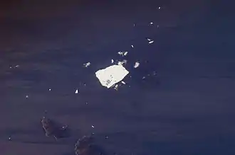 ![]() Astronauts on the International Space Station used a digital camera to capture this view of Petermann Ice Island A, fragment 2, off of the north-east coast of Newfoundland. |