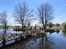 The garden is managed and owned by Petersen's grand-stepdaughter, Susan Caward, and her family, who has struggled to maintain the lawns and dozens of sculptures.[14][1][8] In 2011, the garden was named one of Oregon's Most Endangered Places by the Historic Preservation League of Oregon (now known as Restore Oregon). The "Endangered Places" program raises awareness of the state's "historic treasures in need of the advocacy and support to save them from demise".[8] According to the League, the deteriorating garden needed "maintenance, a business plan and a publicity campaign to ensure stewardship and funds are available to overcome vandalism, theft, and condition issues".[4] In 2012, a contractor accidentally damaged one of the stone bridges, catalyzing an effort to document the garden using laser scanning and other technologies. The Portland-based company i-Ten measured and archived the site's geospatial data, allowing potential future rebuilding to match the original construction.[5]