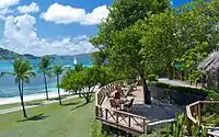 The Petit St. Vincent resort[6] contains 22 cottages,[7] as well as a spa and a dive center in the 115 acre area.[8] Food services are provided by the Main Pavilion Restaurant and Bar and the nearby Beach Restaurant with the adjacent Goatie's Bar.[9][10] Stephenson invested heavily in the refurbishment of the resort, and under the management of husband and wife team Matthew and Anie Semark, the island was inducted into the portfolio of Small Luxury Hotels of the World in July 2013.[11] The diving center on the island was opened by Jean Michel Cousteau in 2014.[12][13]