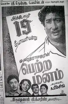 Petra Manam (transl. The Mother's Heart)[1] is a 1960 Indian Tamil-language film directed by A. Bhimsingh and produced by National Pictures. The film stars Sivaji Ganesan, Pushpavalli, S. S. Rajendran and Padmini.[2] It is the Tamil version of the 1953 Telugu film Pempudu Koduku.