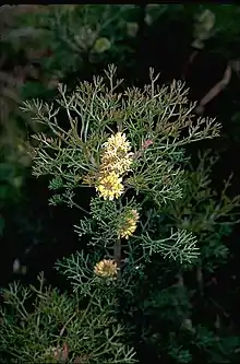 This petrophile can be distinguished from the related Petrophile pulchella by its finely hairy new growth.[4]