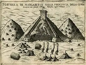 In the following years, Lantzas served the Spanish as a corsair and spy.[17] In July 1576, he went to Himara, where the local population was willing to raise a revolt against Ottoman rule.[13] As part of this, Lantzas, together with the rebels from Himara, led an attack against the nearby Ottoman fortress of Sopot (today Borsh), with success.[13]