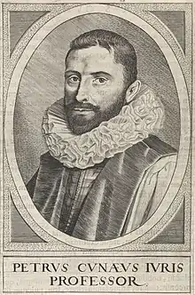 Cunaeus enrolled at the University of Leyden at the age of fourteen, where he studied Greek and Hebrew. Following a trip to England in 1603, he returned to Leyden to study theology and jurisprudence. He was introduced to rabbinic studies and Aramaic by Johannes Drusius. In 1612, Cunaeus became a professor of Latin, in 1613 of politics, and in 1615 of jurisprudence, a position he held until his death.[2]