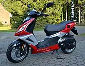 The Peugeot Speedfight is a scooter made by Peugeot Motocycles. It is available in 50 cc (3.1 cu in) and 100 cc (6.1 cu in) models, with the 50 cc moped model being used by holders of restricted licences worldwide. It is available in air- or more expensive liquid-cooled versions.