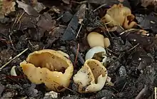 Peziza succosa is a species of apothecial fungus belonging to the family Pezizaceae. It grows in woods in Europe, Iceland, Israel, China, Argentina, and the United States.[1] In Europe this fungus appears in summer and autumn as grey or brown saucers up to 10 cm (3.9 in) in diameter on soil in woodland, often at pathsides. In the United States, this type of cup fungi may also be found on decaying deciduous wood. It is inedible.[2]