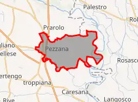Pezzana borders the following municipalities: Asigliano Vercellese, Caresana, Palestro, Prarolo, Rosasco, and Stroppiana.