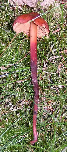 Phaeocollybia is a genus of fungi in the family Hymenogastraceae.[2] They are characterized by producing fruit bodies (mushrooms) with umbonate caps and rough brown spores. The genus is widely distributed (especially in temperate regions), and contains about 50 species.[3] They are known for a long stipe which continues down into the ground, known as a rooting stipe or pseudorhiza formed as the fruitbody grows up from the subterranean colonized roots well below the organic soil layer. The genus is primarily mycorrhizal but may also be somewhat parasitic on forest trees.[4]