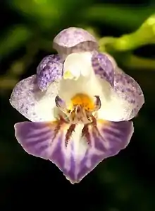 Phalaenopsis appendiculata is a species of miniature epiphyte in the family Orchidaceae, endemic to peninsular Malaysia.[6] This species grows on narrow branches. The very short stems bear two to four, elliptic or oblong-elliptic, coriaceous leaves, which may reach up to 7 cm in length and 3.5 cm in width. Spotted, violet flowers are produced in succession on short, few-flowered, suberect racemes. The specific epithet appendiculata refers to the longitudinal rows of appendages on the three-lobed labellum.[7] Artificial asymbiotic seed germination techniques have been studied.[8] Conservation efforts can benetif from artificial propagation of rare and endangered species.[9] Both ex situ and in situ conservation can benefit from in vitro seed germination, as the process increases adaptive evolutionary changes and as a result there is more genetic variation in reintroduced populations.[10]