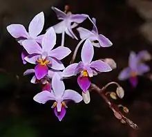 Phalaenopsis equestris is a flowering plant of the orchid genus Phalaenopsis and native to Philippines and Taiwan. The inflorescence has 10 to 20 flowers of about 25 mm (1 in) diameter.[1]