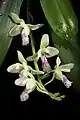 Phalaenopsis japonica, also known as 萼脊兰 (e ji lan) in Chinese, 나도붕난 (nadopungnan) in Korean and ナゴラン or 名護蘭 (nago-ran) in Japanese, is a species of epiphyte in the family Orchidaceae, native to open forests of China, Japan and Korea,[5] occurring at altitudes of 600–1400 m. It also may grow lithophytically on cliffs along valleys.[6] The 1 to 1.5 cm long stems bear 6–13 cm long and 2–3 cm wide, alternate leaves. Inflorescences are between 17 and 19 cm in length and bear flowers with whitish green, petals and sepals. The lateral sepals bear 1-3 transverse bands of dull brown spots on the adaxial surface. The midlobe is spotted purple to red. The horn-shaped spur ranges from 1.2 to 1.4 cm in length. The plants have four pollinia in two pairs, but previously they have been mistaken as two pollinia.[7]