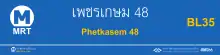 Phetkasem 48 station (Thai: สถานีเพชรเกษม 48, RTGS: Sathani Phet Kasem Si Sip Paet, pronounced [sā.tʰǎː.nīː pʰét kā.sěːm sìː sìp pɛ̀ːt]) is a Bangkok MRT rapid transit station on the Blue Line, located above Phet Kasem Road located in Bangkok, Thailand.