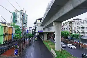 Phetkasem 48 MRT station seen from ground level near bus stop on Phet Kasem Road (inbound)