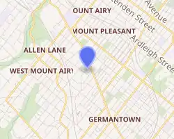 Two segments of West Phil Ellena Street are included within the boundaries of the former estate, and Germantown Avenue separates West Phil Ellena Street from East Phil Ellena Street. Pelham was an alternative name for Carpenter's house, and Pelham Road runs through the former estate.[3]